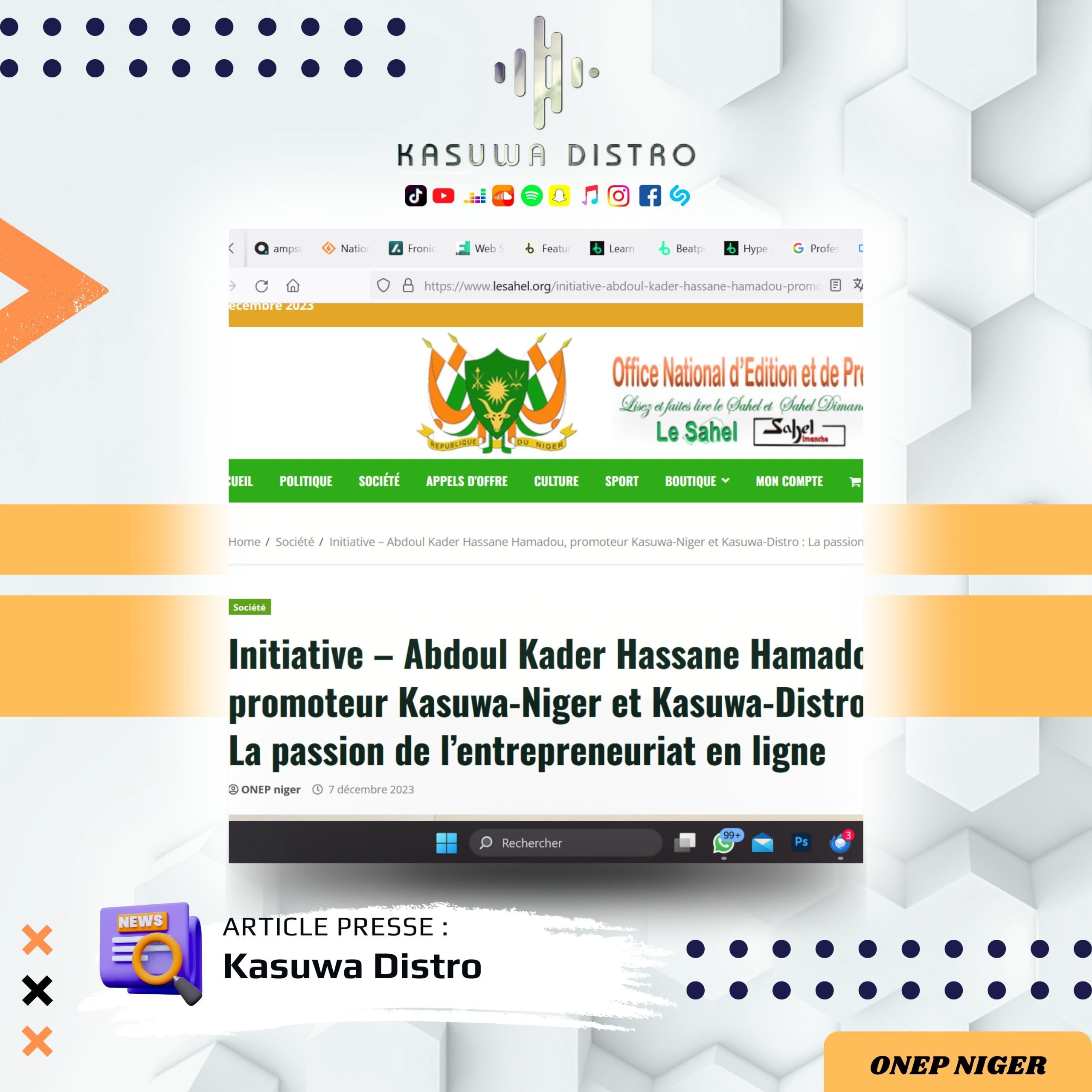 “Kasuwa Distro fournit des services tels que la gestion, la distribution et la promotion de contenu numériques comme la musique, la monétisation et la certification des réseaux sociaux . Nos services sont fournis aux artistes, maisons de disques, aux labels, aux créateurs de contenus et influenceurs.”
