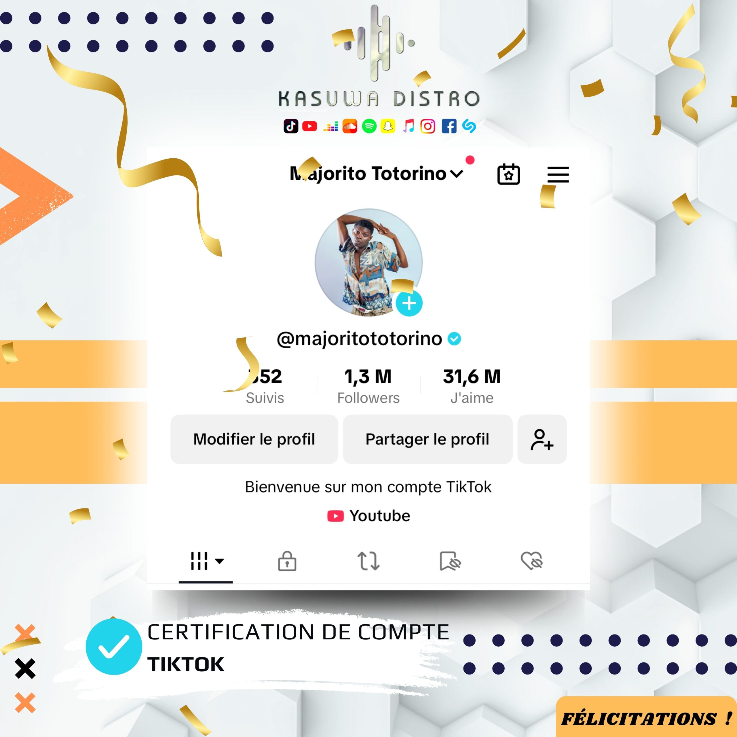 Kasuwa Distro est une plateforme spécialisée dans la gestion, la distribution et la promotion de contenu numérique tel que la musique. Nous aidons les artistes, labels, créateurs de contenu et influenceurs à monétiser leurs œuvres et à obtenir des certifications sur les réseaux sociaux. Nous offrons également des services de sécurisation et de gestion des comptes pour les entreprises et le gouvernement, assurant une présence en ligne efficace et protégée.